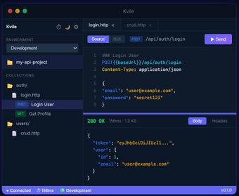 Kvile 是一个免费的桌面开发工具,作为一个轻量级HTTP 客户端构建,适合那些更喜欢直接使用 .http 文件而不是依赖于更重的、需要账户的 API 平台的开发者。这个工具被设计为一个优先离线的 HTTP 调试应用,不需要账户,没有遥测,并且对JetBrains HTTP 客户端、VS Code 和Kulala使用的格式提供一流支持。